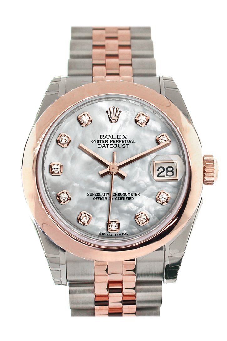 Rolex Datejust 31 White Mother of Pearl Diamond Dial 18K Rose Gold Two Tone Jubilee Ladies Watch 178241