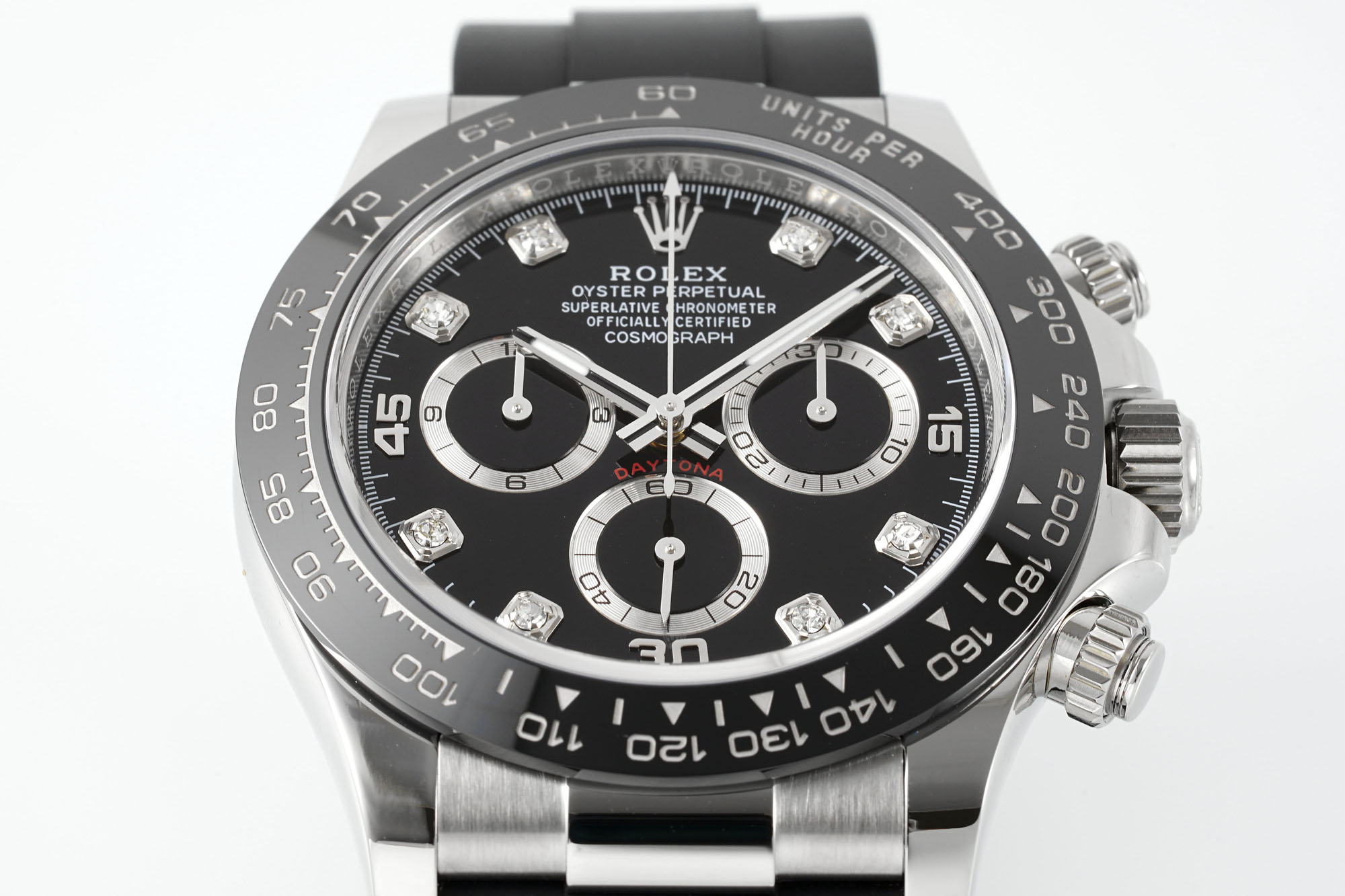 • Bezel Type: Black monobloc Cerachrom bezel in ceramic with moulded tachymetric scale