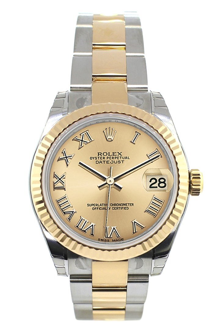 Rolex Datejust 31 Champagne Roman Dial Fluted Bezel 18K Gold Two Tone Ladies 178273