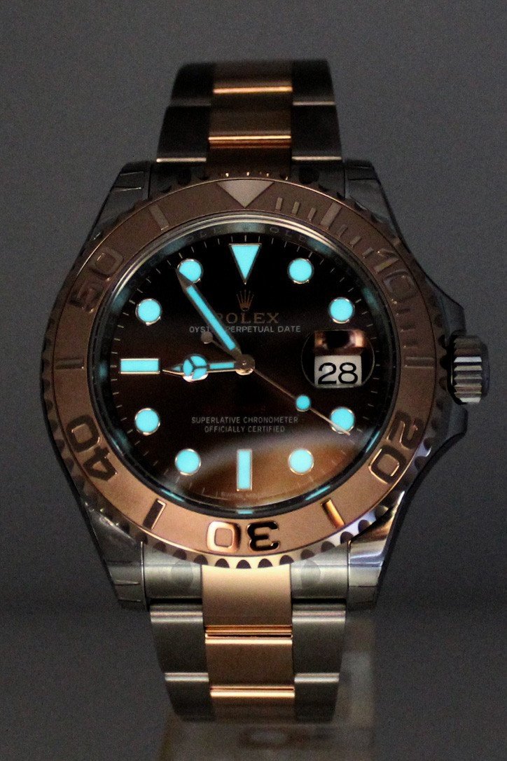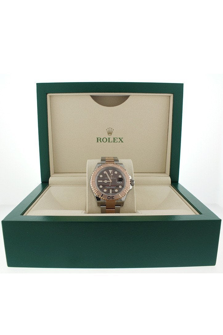 Stainless steel and 18k everose gold case with a stainless steel and 18k everose gold Rolex Oyster bracelet. Bi-directional rotating 18k everose gold bezel. Chocolate dial with everose gold-tone hands and index hour markers. Minute markers around the outer rim. Dial Type: Analog. Date display at the 3 o'clock position. Rolex Calibre 3135 automatic movement. Scratch resistant sapphire crystal. Screw down crown. Solid case back. Case size: 40 mm. Round case shape. Oysterlock clasp. Water resistant at 100 meters / 330 feet. Functions: date, hour, minute, second. Luxury watch style. Watch label: Swiss Made. Rolex Yacht-Master Chocolate Dial Steel and 18K Everose Gold Oyster Mens Watch. 116621