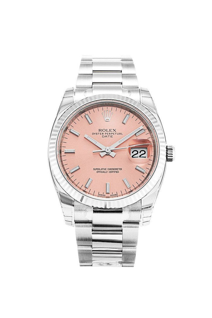 ROLEX Date 34 Pink Dial Steel White Gold Watch 115234