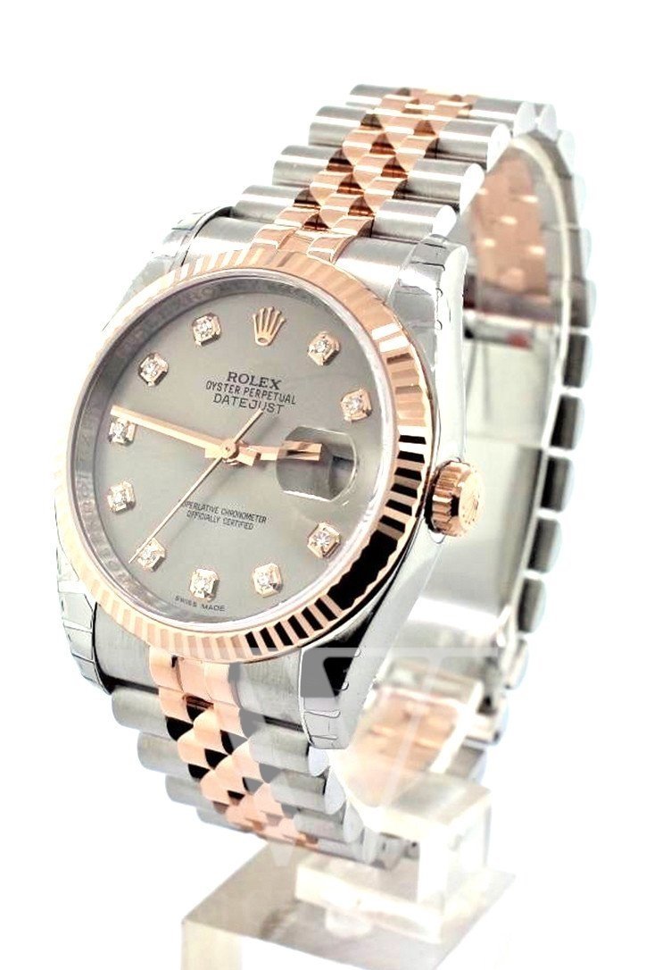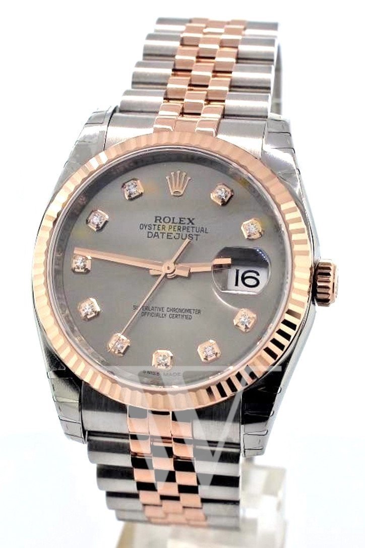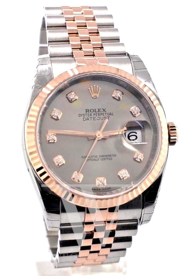 Rolex Datejust 36 Steel set with diamonds Dial Fluted Steel and 18k Rose Gold Jubilee Watch 116231