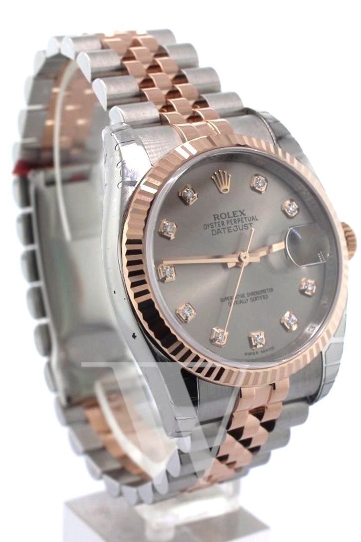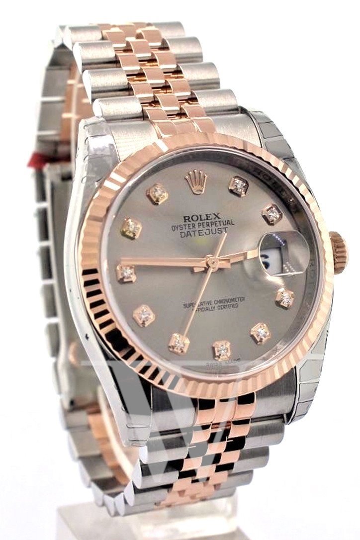 • Rolex Datejust 36 Steel set with diamonds Dial Fluted Steel and 18k Rose Gold Jubilee Watch 116231
