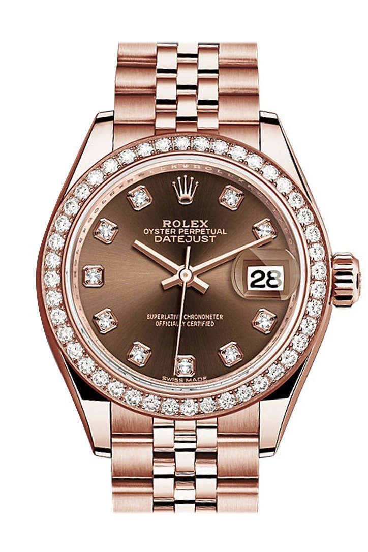 • Rolex Datejust 28 Chocolate Diamond Dial Diamond Bezel Rose Gold Jubilee Ladies Watch 279135RBR 279135 NP