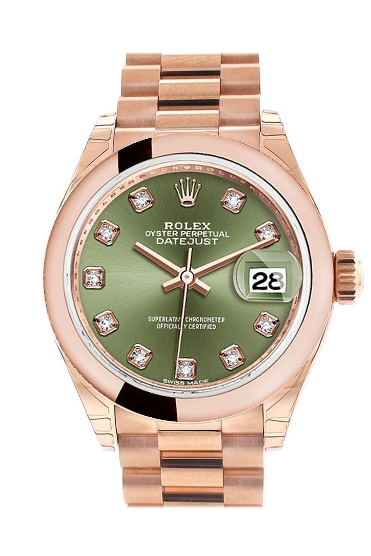 Rolex Datejust 28 Olive Green Diamond Dial Rose Gold President Ladies Watch 279165 NP