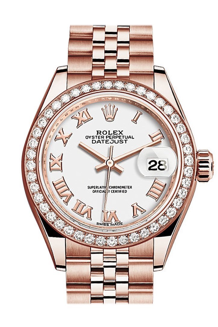 Rolex Datejust 28 White Roman Dial Diamond Bezel Rose Gold Jubilee Ladies Watch 279135RBR NP