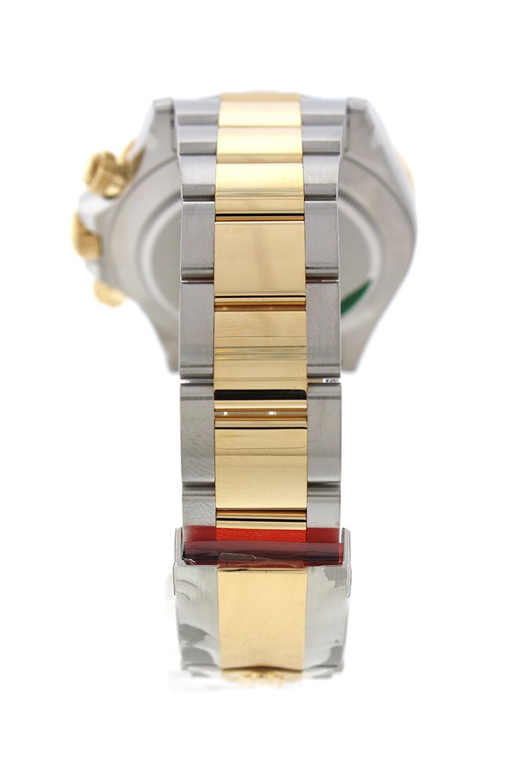 Stainless steel and 18k yellow gold case with a stainless steel and 18k yellow gold oyster bracelet. Fixed - 18k yellow gold (tachymeter engraved) bezel. White dial with yellow gold-tone hands and luminous stick hour markers. Minute markers around the outer rim. Dial Type: Analog. Luminescent hands and dial markers. Chronograph - sub-dials displaying: three - 60 second, 30 minute and 12 hour. Rolex Calibre 4130 automatic movement with about 72 hours of power reserve. Scratch resistant sapphire crystal. Solid case back. Case size: 40 mm. Round case shape. Oysterlock clasp. Water resistant at 100 meters / 330 feet. Functions: chronograph, hour, minute, second, tachymeter, chronometer. Luxury watch style. Watch label: Swiss Made. Rolex Cosmograph Daytona White Dial Stainless Steel and 18K Yellow Gold Rolex Oyster Bracelet Automatic Men's Watch 116503