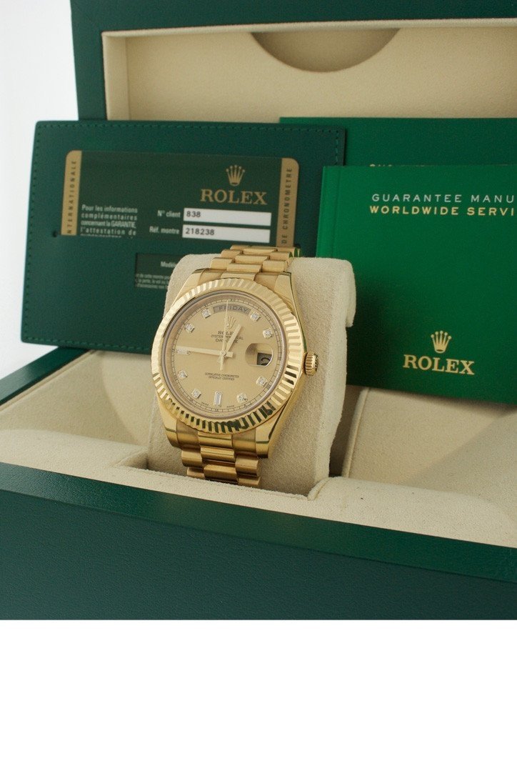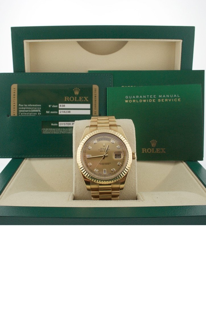 Rolex DAY-DATE II 41 Champagne Diamond Dial 18K Yellow Gold Men's Watch 218238