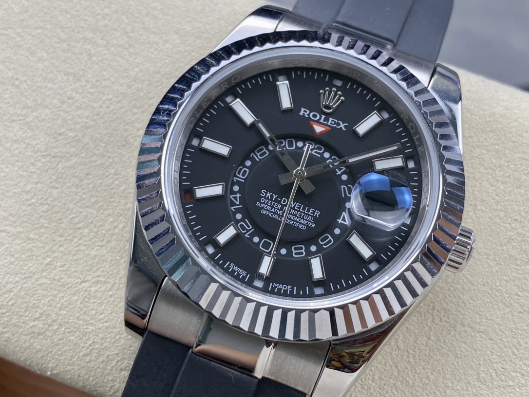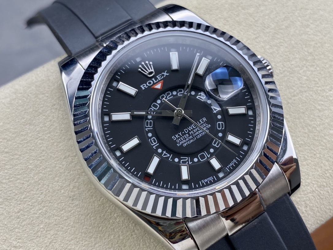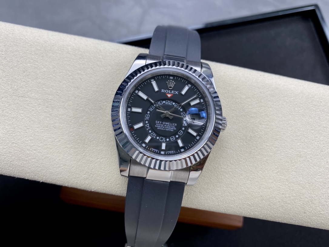 Rolex Sky Dweller 42 Bright Black Dial White Gold Mens Watch 336239-0002 336239 New Release Model 2023