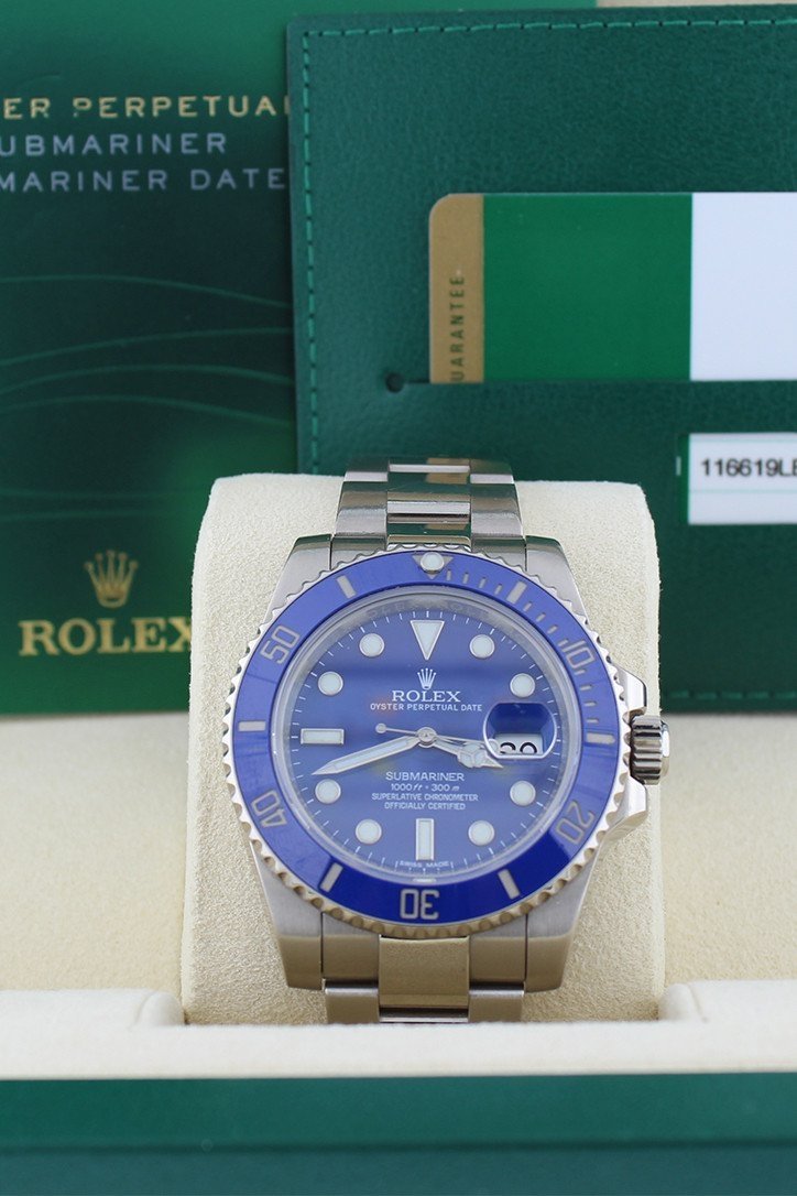 Rolex Submariner Date Blue Dial 18k White Gold Steel Mens Watch 116619LB 116619