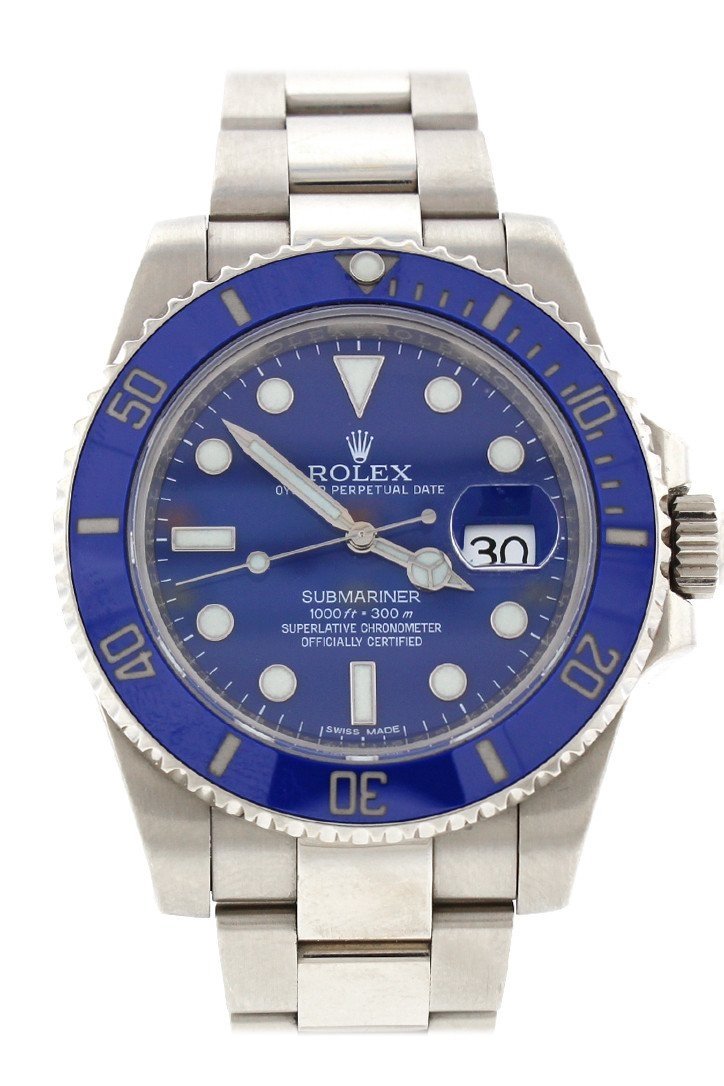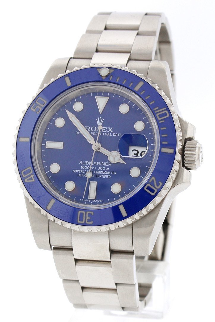 • Rolex Submariner Date Blue Dial 18k White Gold Steel Mens Watch 116619LB 116619