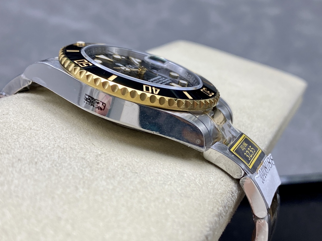 Stainless Steel and 18K Yellow Gold Bracelet . Uni-directional rotating ceramic bezel. Black dial with index hour markers. Dial Type: Analog. Date display at the 3 o'clock position. Rolex Calibre 3235 Automatic movement, based upon Rolex 3035, containing 31 Jewels, bitting at 28800 vph, and has a power reserve of approximately 70 hours. Scratch resistant sapphire crystal. Screw down crown. Solid case back. Round case shape, case size: 41 mm. Oysterlock clasp. Water resistant at 300 meters / 1000 feet. Functions: date, hour, minute, second, chronometer. Submariner Series. Luxury watch style. Watch label: Swiss Made. Item Variations: M126610LV-0002. Automatic Chronometer Black Dial Men's Watch 126613LN 126613  New Release 2020